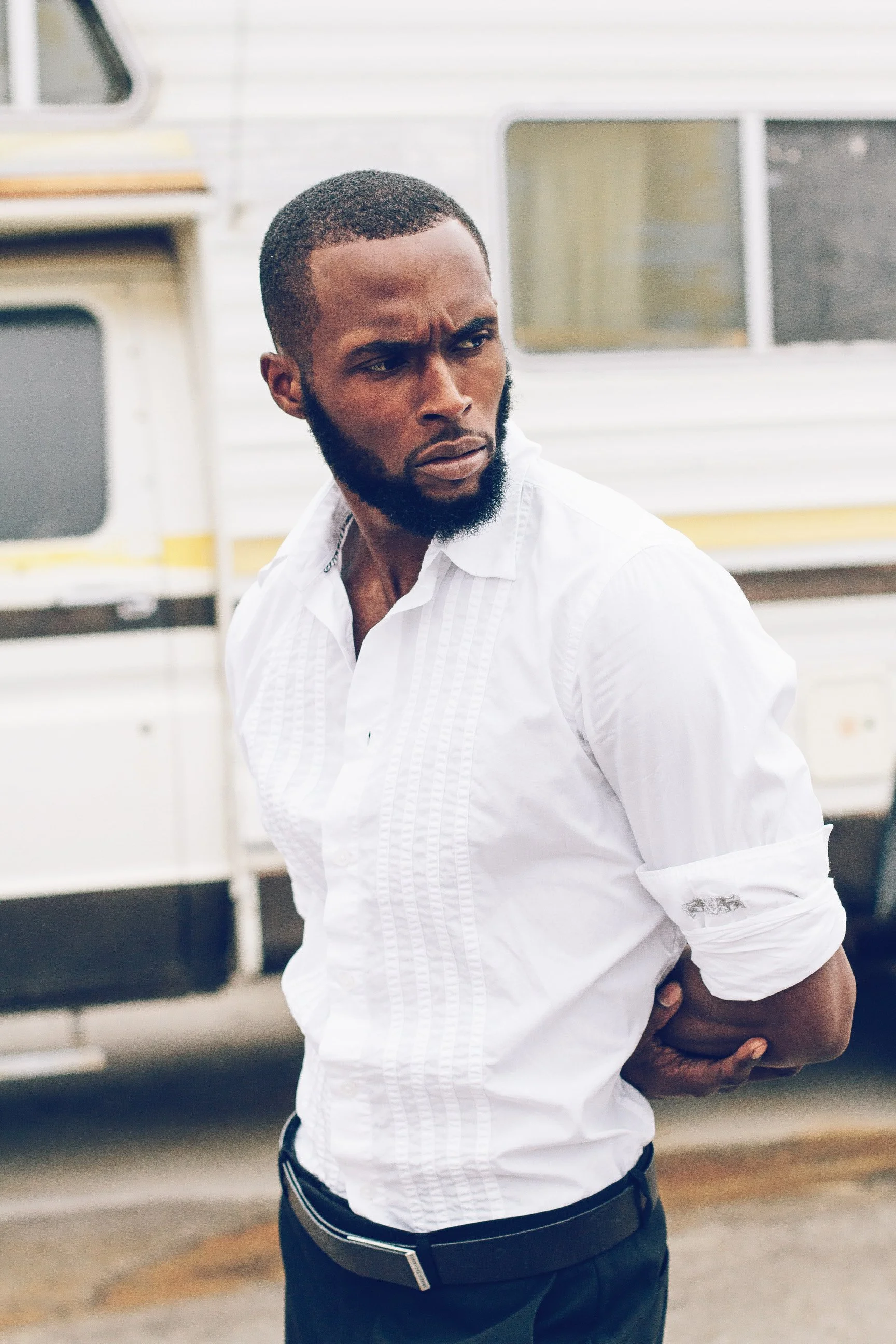 6' / Chest 39 / Inseam 32 / Collar 16 / Waist 31 / Suit 40R / Shoe 11 / Hair Black / Eyes Brown